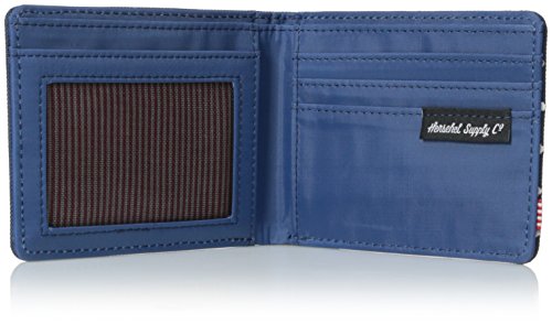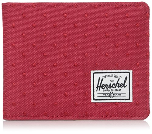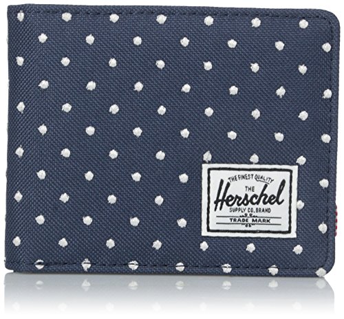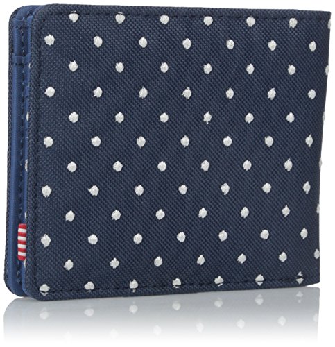 The utilitarian Polka Dot Embroidery Hank bi-fold wallet features custom stitch detailing with multiple storage options and a mesh identification window inside.