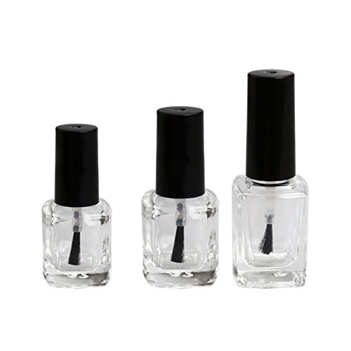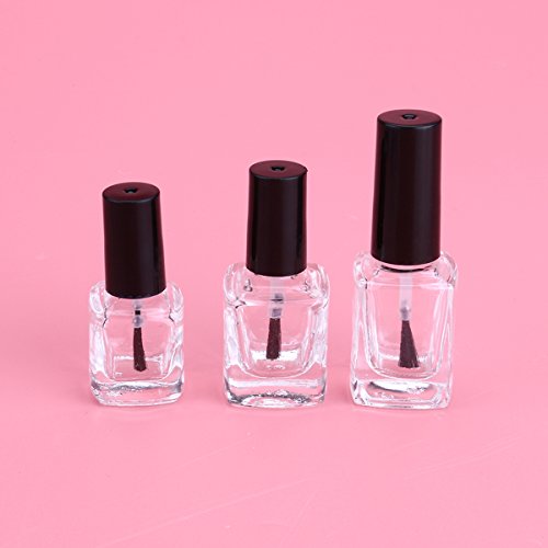 Frcolor 3pcs/pack 5ml 10ml 15ml Empty Nail Polish Bottle with Brush Inside Square Shaped Clear Nail Polish Container Bottles