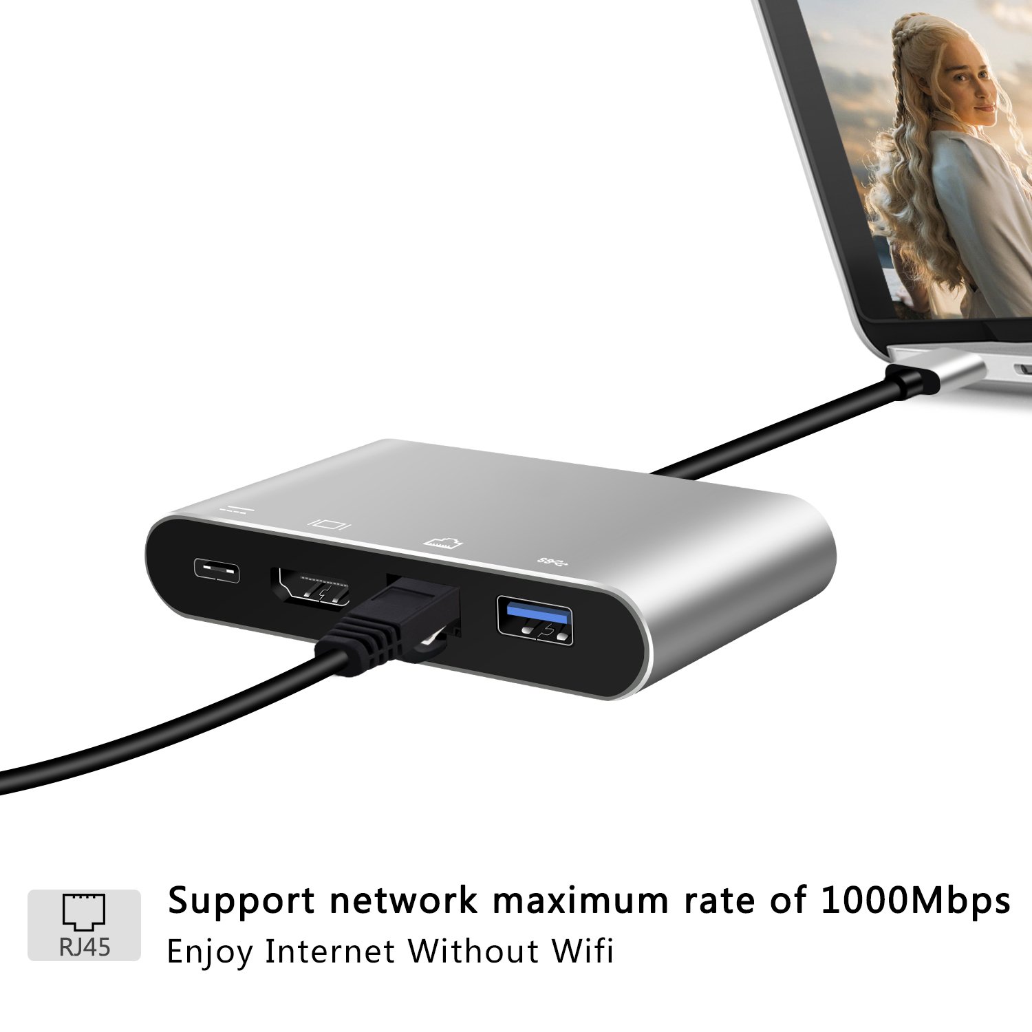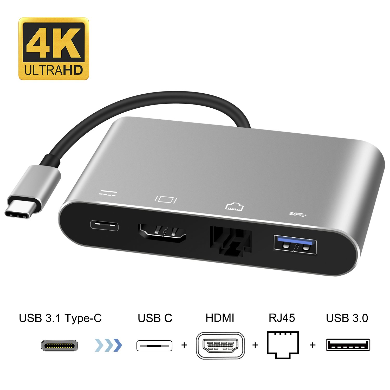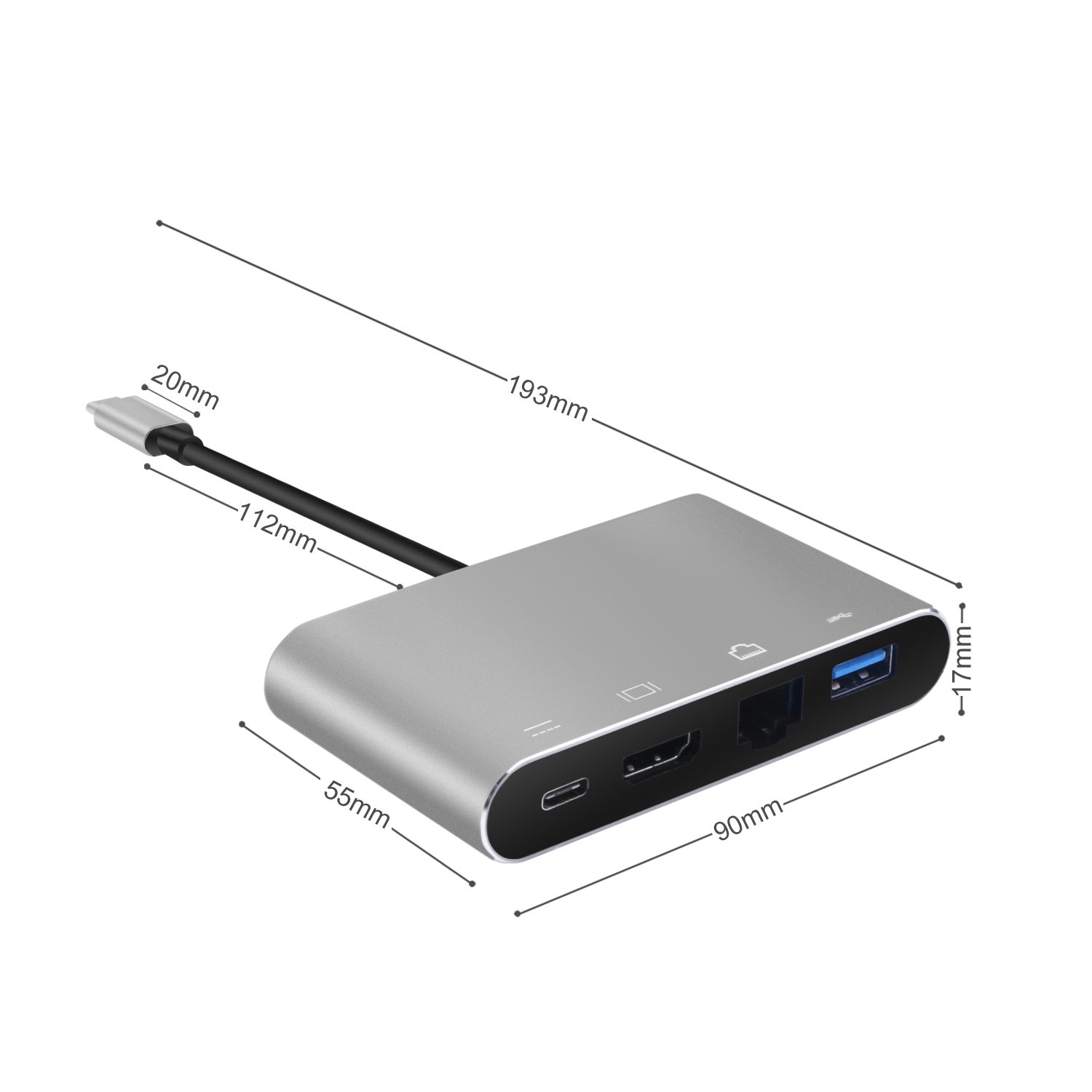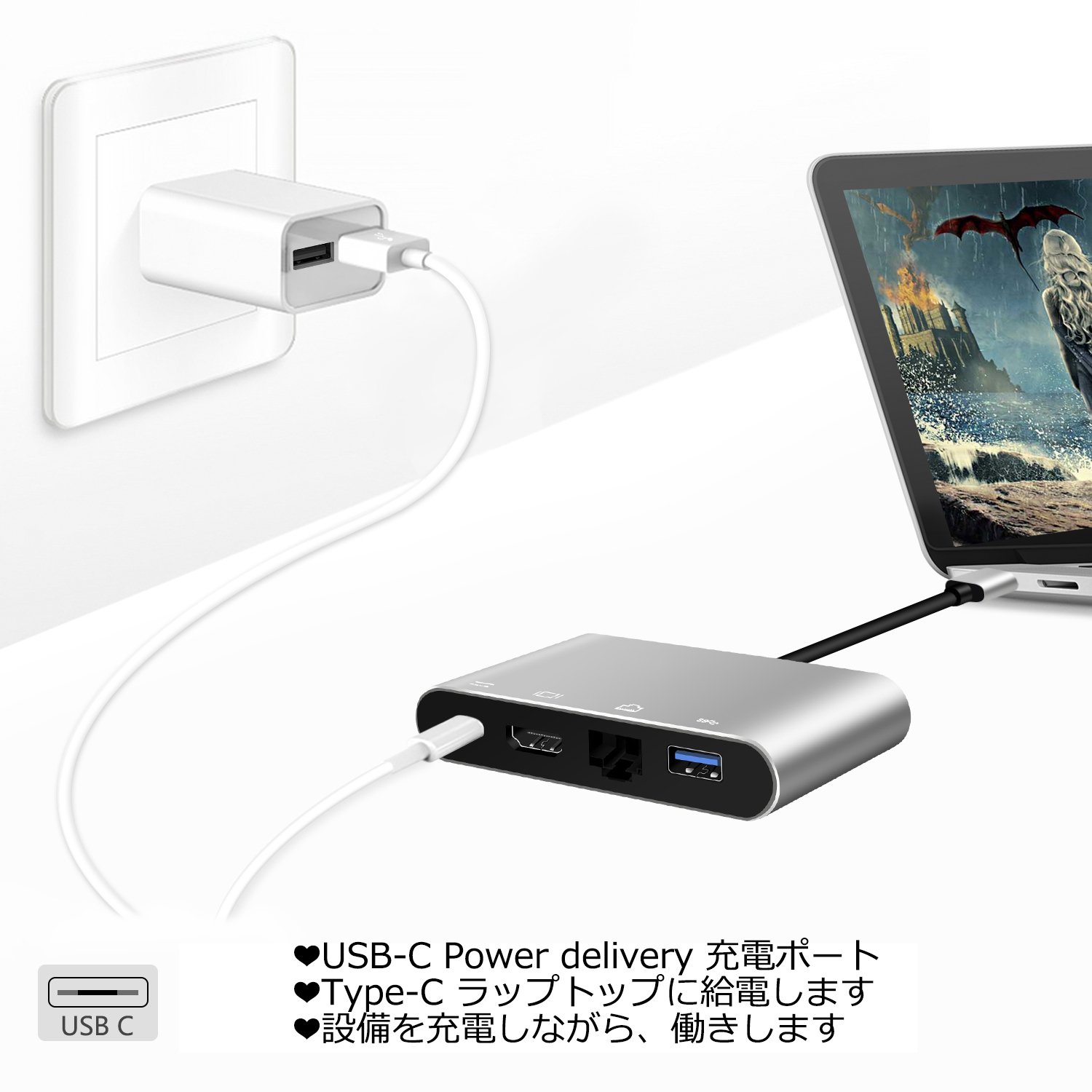 Type-C hub 4 in 1 USB to C to HDMI / LAN / USB 3.0 / Type C PD Charge video conversion adapter