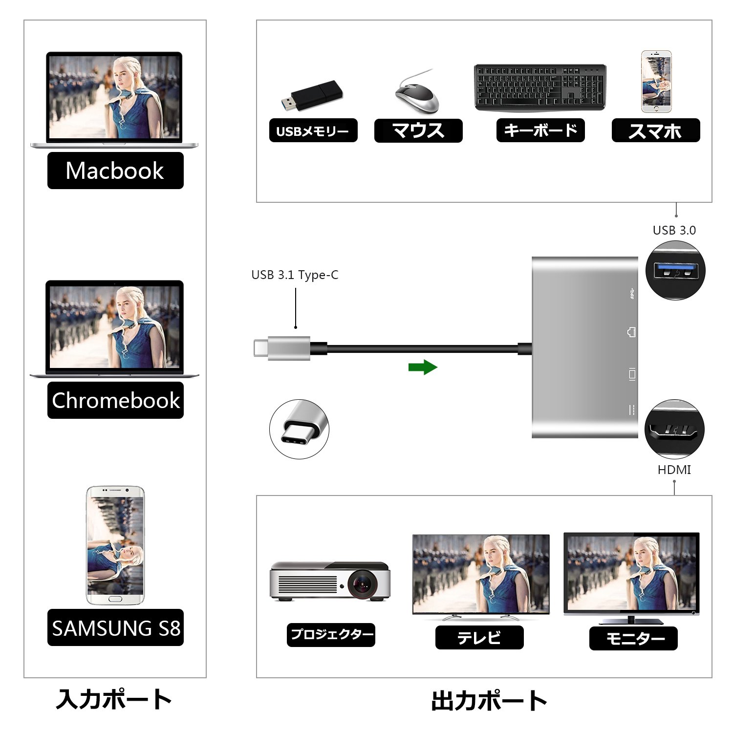 You can realize HDMI conversion from USB - C, video and audio with one.