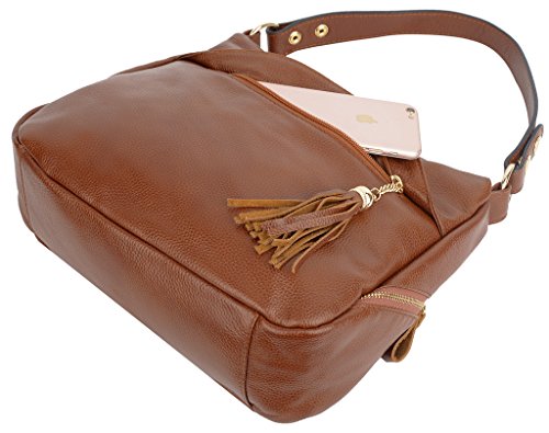 -. Brand : YALUXE -. Department : womens -. Feature : Soft Leather with shiny gold-color hardware and brown cotton lining. / High quality gold color hardware has high resistance to rust,corrosion and tarnishing.Shiny as a new one even years later. / 2 Outer zipped pockets for keys/smartphones. The inside has two open pockets and two zipped pockets for P.R.Ivate items. This purse can hold your phone/sunglasses and makeups and 10" tablet like IPAD AIR. / Perfect for a night out /dating /workplace / business. Also it is an awesome gift for family and friends. / Dimensions: 10.63" L x 7.87" H x 3.85"W. Weight is 0.6kg. Handle drop is 9.84" and also comes with a shoulder strap: 47.24". -. ProductGroup : Shoes -. ProductTypeName : HANDBAG -. Size : Medium -. Title : YALUXE Women's Double Side Pockets Tassel Leather Purse Crossbody Shoulder Bag