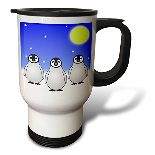 3dRose Baby Emperor Penguins Snowy Day Travel Mug, 14-Ounce