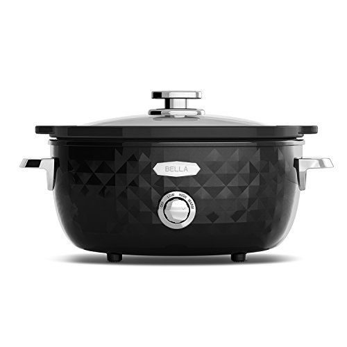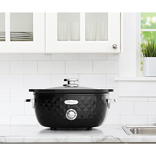 The BELLA Diamonds Collection 6Qt. Slow Cooker takes care of dinner, so you don't have to. Simply add your ingredients and leave the stylish slow cooker to do the rest. The large 6-quart capacity is perfect for family-size servings. Nonstick feet keep the slow cooker in place and the removable stoneware pot and tempered glass lid are dishwasher safe for easy clean up.Feature