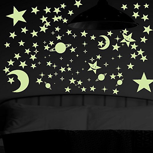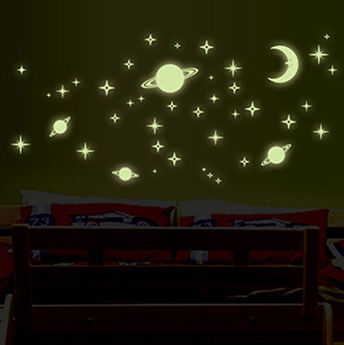- ✓Bonus Gift - Comes with a extra free 12 pcs/pack moons and smiling stars.Break up the monotony of a typical glow in the dark stars ceiling by sprinkling stars of all sizes throughout your sky. With dots ranging, you’ll have everything you need to bring your star ceiling to life.
