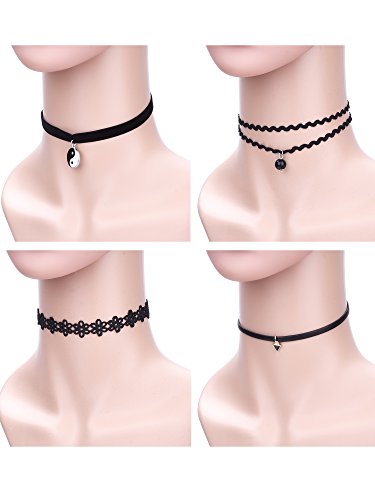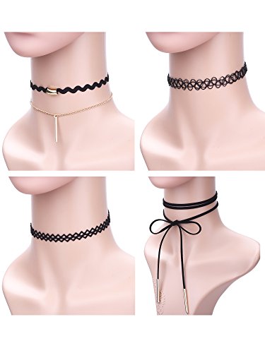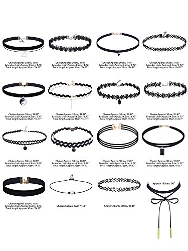 Mudder 16 Pieces Choker Necklaces Set Black Choker Necklace Lace Velvet Choker for Women