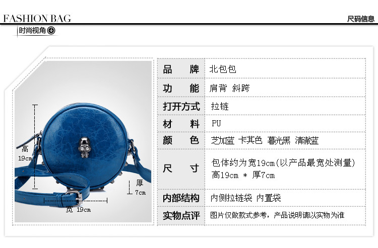 新款骷髅潮女包女士单肩斜包跨包。内部1个置物袋