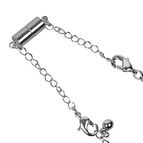 Set includes 2 clasps that are 4 inches long each. 1 in silver tone and 1 in gold tone. Made of brass and magnets with silver and gold toned plating. Can be used on any type of jewelry clasp.