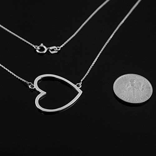 Always be reminded of love and devotion with this fashionable 925 sterling silver sideways necklace with an 20 x 21.5 millimeter open heart pendant. Its cutout design perfectly complements the necklace's thin, dainty rolo chain which is also made on the same fine quality silver as the cutout heart.Feature