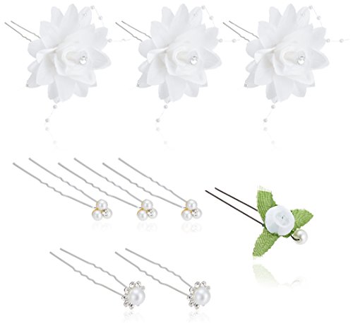 -. Title : ホワイトダリア 白花ヘアピン(3本) & ミニトリプルパールヘアピン(3本)&パールストーンヘアピン(2本)&&パール付カラーミニローズヘアピン(1本)セット Uピン 髪飾り ヘアアクセサリー 収納ケース入り