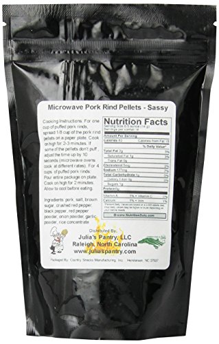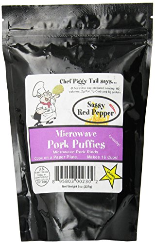 -. Title : Chef Piggy Tail Microwave Pork Puffies Pork Rinds, Sassy, 8 Ounce