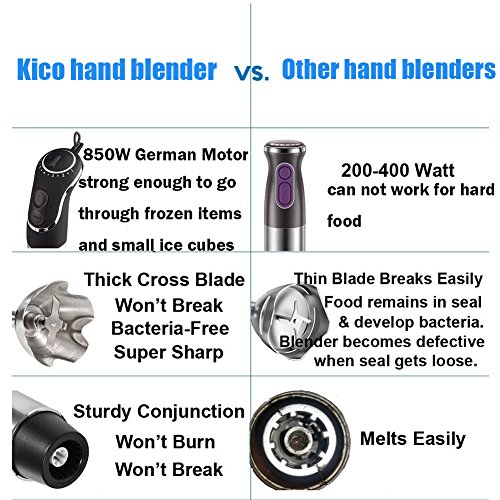Kico concentrates on high quality & practical & durable kitchen supplies and every product is tested strictly. Are you confused: Which hand blender is best for you? Of course, the Kico. You will fall in love with the Kico hand blender! And you will be amazed by how well made and versatile it is, especially it's more powerful.