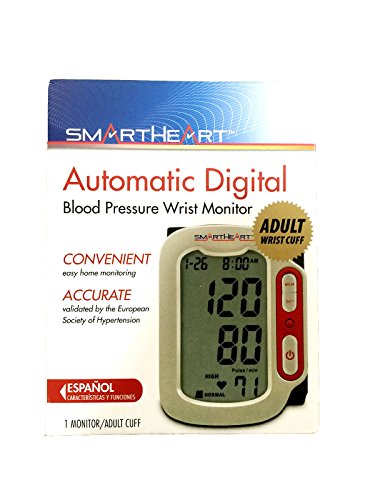 -. Feature : Clinically accurate reading, European society of hypertension validated, extra large easy to read display / Fully automatic inflation and deflation, simultaneous systolic, diastolic and pulse results, memory bank hold 90 readings / Memory recall with date/time stamp, average of last 3 readings, hypertension indicator, irregular heartbeat detection, automatic shut off / Latex free cuff fits wrist size 5 inch-8.25 inch, hard plastic storage case / Convenient one-button operation / Provides the ease and comfort of at-home monitoring / Safely latex-free