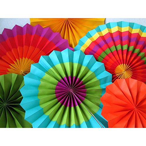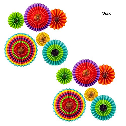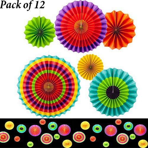 -. Title : Adorox Set of 12 Vibrant Bright Colors Hanging Paper Fans Rosettes Party Decoration for Holidays 8" 12" 16" Various Sizes Fiesta (2 pack) …