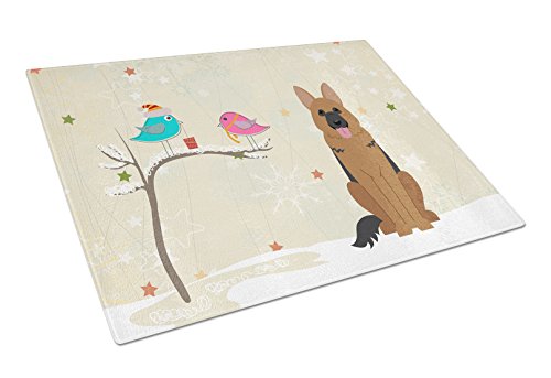 Caroline's Treasures BB2539LCB Christmas Presents Between Friends German Shepherd Glass Cutting Board, Large, Multicolor