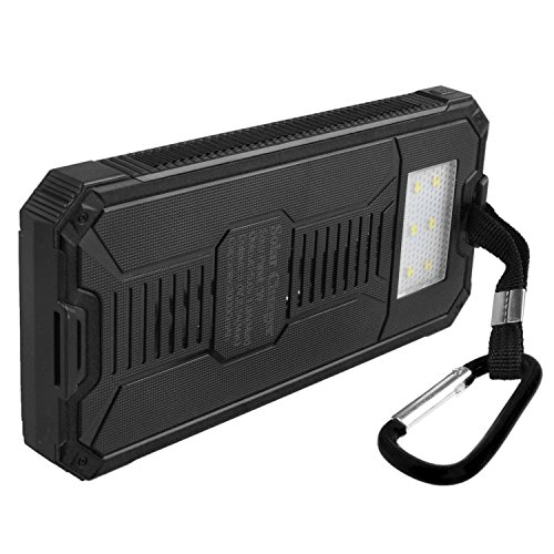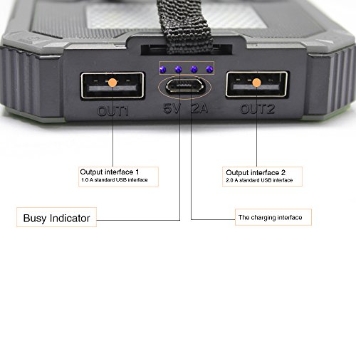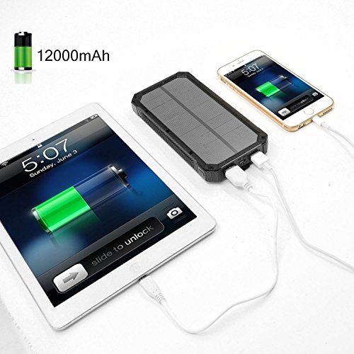 - Feature : ★ The efficiency of energy transformation from solar to electric energy is really low, even in a perfect laboratory condition, the transformation efficiency just 30%. When it used in outdoor, it also affected by the weather, the location or others factors. So the solar panel is not good as first choose to recharging. We suggest you recharge it via wall charger at the beginning, to make the power battery fully activated. / It's a usefull tool for camping or other outdoor activities. It's a good solar power bank and also a good LED flash light or a camping light. And the flashing light mood can be used as SOS / Compatible with most 5V USB-charged devices, 12000mAh could charge an iPhone thrice, or a large capacity smartphone twice, or an iPad once; / Build-in Lithium Polymer battery cells: anti-explosion, lightweight, compact and reliable. Long lifespan with more than 500 recharging times. / 2 years warranty.