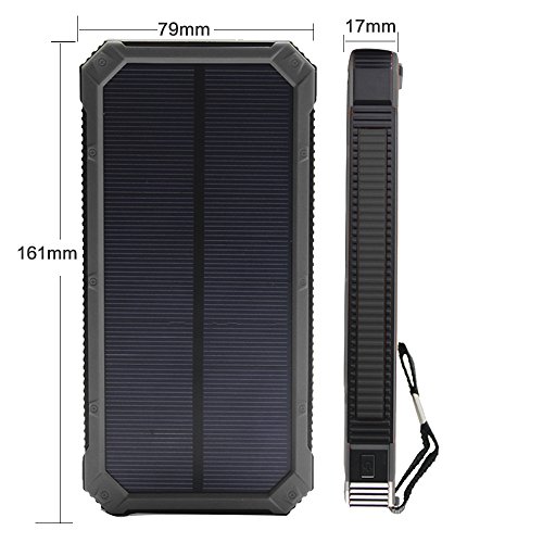 - Title : 12000mAh Solar Charger, Portable Solar Powered Phone Charger Dual USB Solar External Battery Pack Power Bank for Cellphones With Solar LED Lights For Emergency or As A Camping Light (Black)