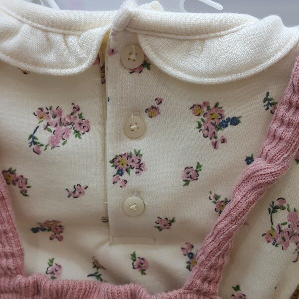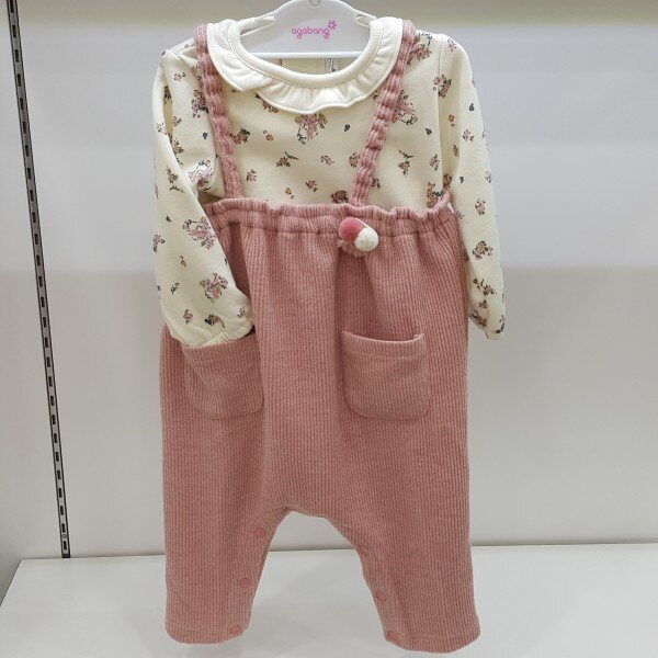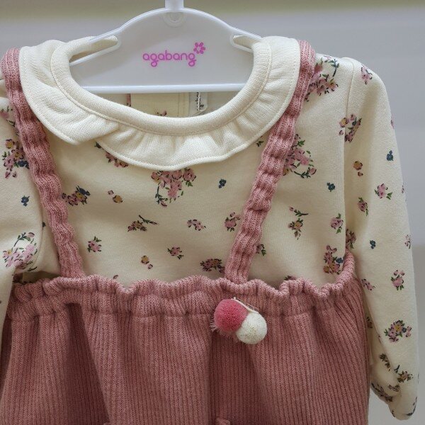 여아용 점프슈트로 상의가 분리되어 다른 옷과 매치하여 입기도 할 수 있으며어깨끈은 밴드가 들어가 있어 활동하기 편함