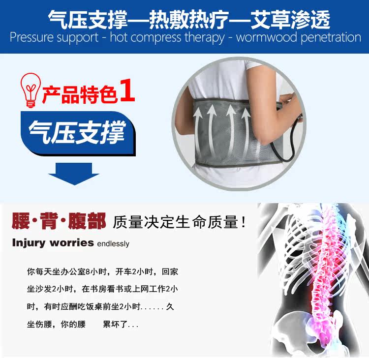气压发热护腰带理疗仪 劳损保暖宫非钢板腰托男女士夏季
