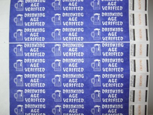 -. Title : 100 Drinking Age Verified Purple Consecutively Numbered Tyvek Wristbands