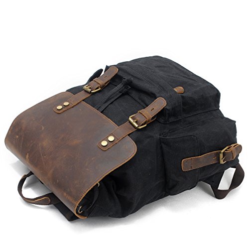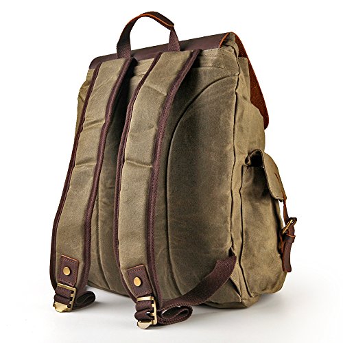 -. Title : H-ANDYBAG Waxed Canvas Bag Rucksack Backpack Men 15.6 Inch Laptop