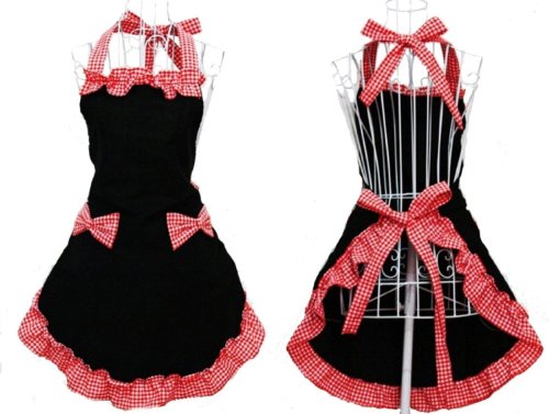- Title : E-Tribe Best Sale Kitchen Fashion Cute Sweety Hign Quality Cotton Grid Pattern Double Color Working Chefs Kitchen Cooking Cook Flirty Apron with Bowknots Pockets Design Great Chrismas Gift Wife Daughters Ladies (Black and Red)