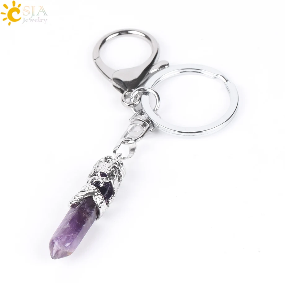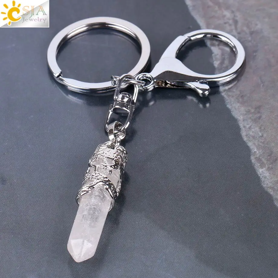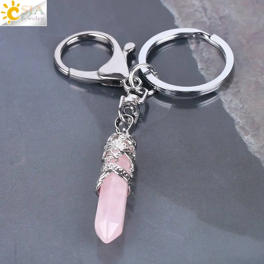 Keychain Features:Hexagonal Prism Point + Gemstone Beads + Reiki Healing