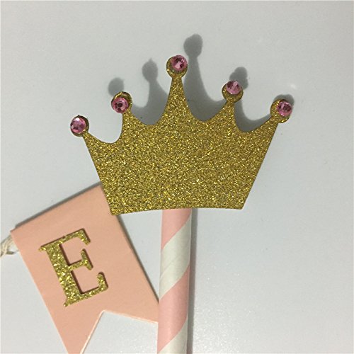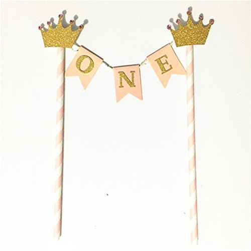 Glitter Gold Imperial Crown Baby Girl First Birthday Party Cake Decoration Pink Cake Topper