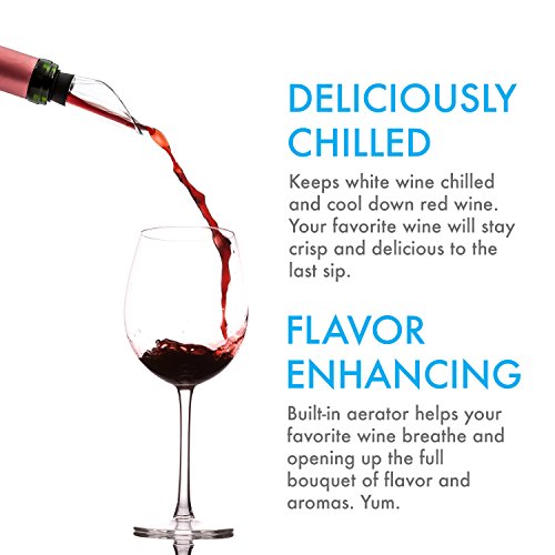 - Feature : KEEP WINE DELICIOUSLY CHILLED - Furball's finest 3-in-1 wine chiller stick keeps white wine chilled and cools down red wine, your favorite wine will stay crisp and delicious to the last sip. / ENHANCE THE WINE'S FLAVOR QUICKER - Furball wine chiller stick's built in aerator feature allow your favorite wine to breath and opening up the full bouquet of flavors and aromas, quicker than using a traditional wine decanter. / POUR WINE THE CLASSY WAY - No more messy-drips, Furball wine chiller features a stylish built in aerator pouring spout that catches drips and prevent spills. It also gives you more control on the amount you pour to you or your guests' glass, LIKE A PRO! / SLEEK, STYLISH AND DURABLE: A MUST-HAVE wine accessories for wine enthusiast! Suitable for indoor and outdoor occasions or as a stylish gift to your friends and family, THEY WILL LOVE IT! / SAFE, EASY AND PRACTICAL: Furball 3-in-1 wine chiller stick is made of high quality FDA approved stainless steel, rubber and acrylic. It is easy to use and clean and compatible with most wine bottle and easily fits in your wine carrier. GET YOURS NOW TO IMPROVE YOUR WINE TASTING EXPERIENCE.