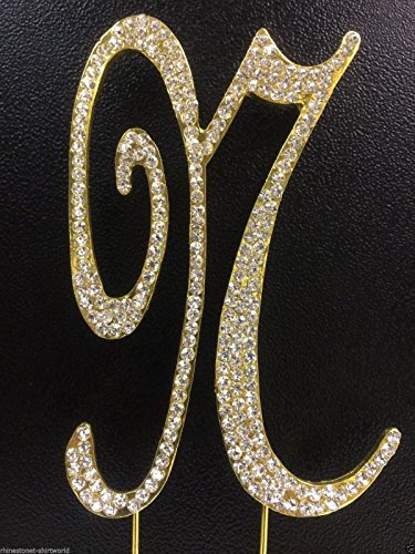 Crystal Rhinestone Covered Gold Monogram Wedding Cake Topper Letter N
