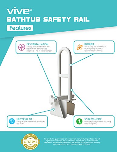 - Title : Bathtub Rail by Vive - Bathtub Safety Grab Bar with Non-marking Rubber Pads - Bathroom Safety Rail for Elderly and Disabled - Lifetime Guarantee