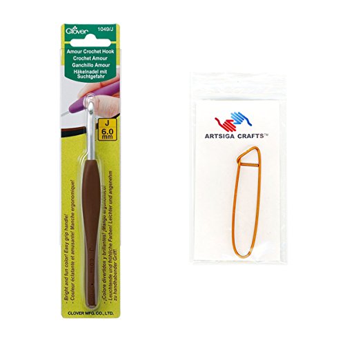- Bundle includes 1 Clover Amour Crochet Hook Size J10/6mm with 1 Artsiga Crafts Stitch Holder 1049/J