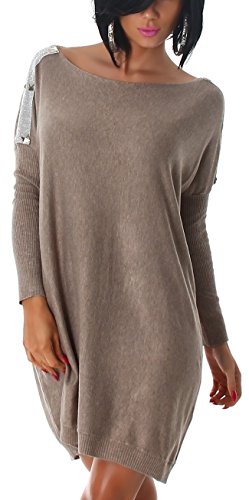 -. Feature : feiner und sehr weicher Pullover aus Feinstrick / besetzt mit silberfarbenen Flachnieten an der Schulterpartie / sehr großzügig geschnitten für hohes Wohlbefinden & Gemütlichkeit / Langarm (zu 3/4 aus Feinripp) mit U-Boot Halsausschnitt / Größenangaben siehe Produktbeschreibung