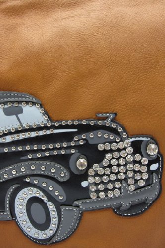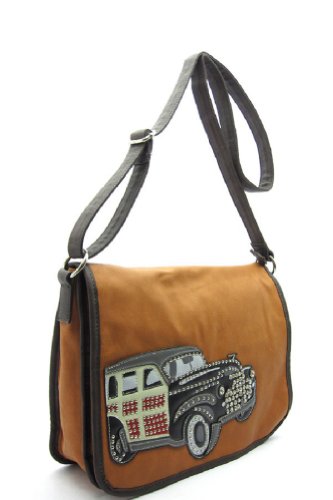 Product Description Rhinestone Studded Antique Car Brown Messenger Book Bag