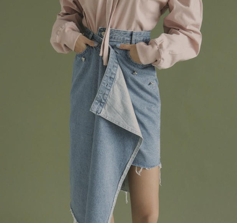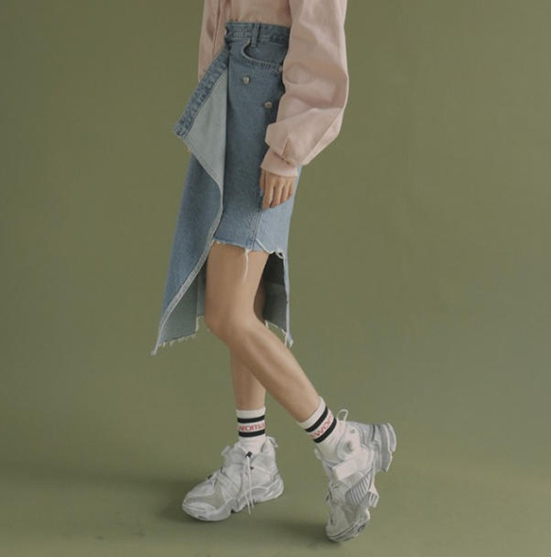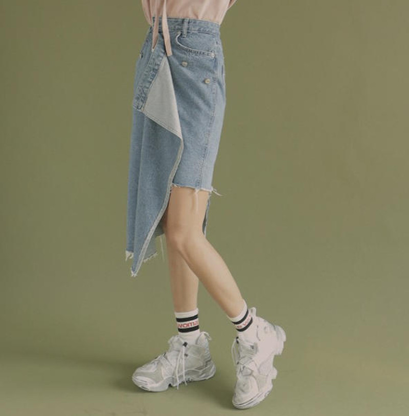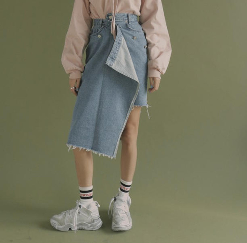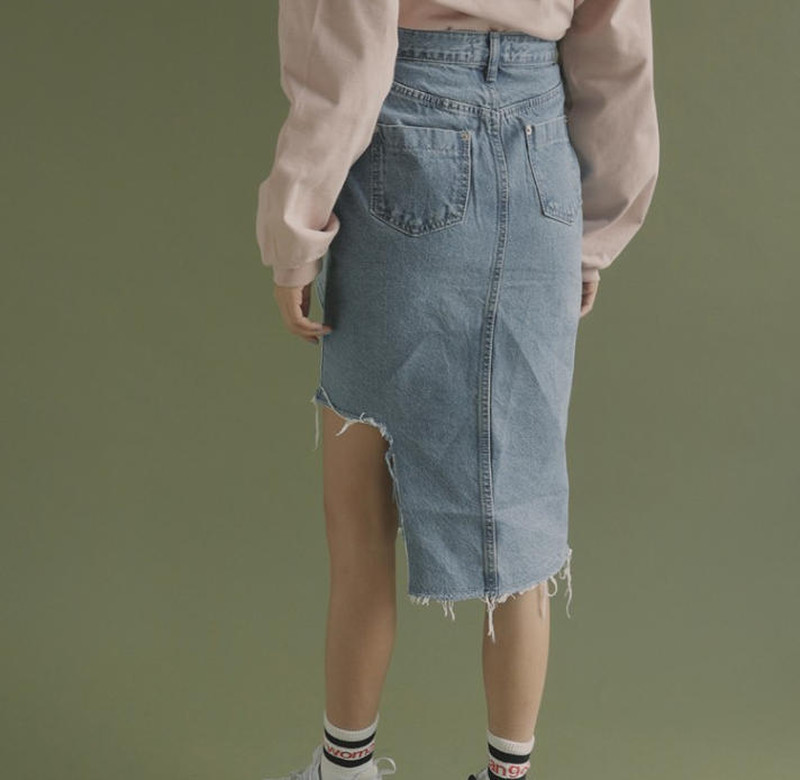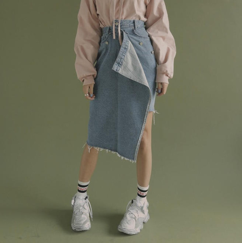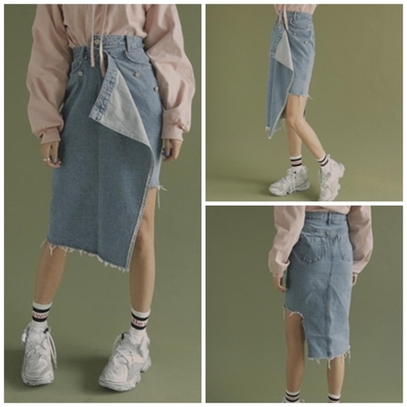♢ポイント♢ ストリートコーデにオススメのデニムスカートです。 不規則なデザインが目を引きます♪