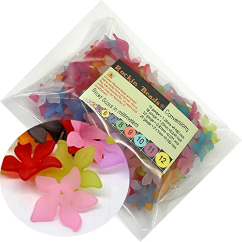 Rockin Beads Brand, 150 Frosted Mix Lily Flower Acrylic Beads Bead 28mm (1-1/8 Inch)