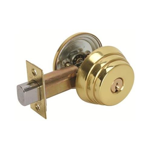 -. Feature : Arrow -- Grade 2 deadbolts, spec: Medium duty single cylinder Deadbolt / Grade 2, Polished Brass, backset 2-3/4 inch / This product is manufactured in United states