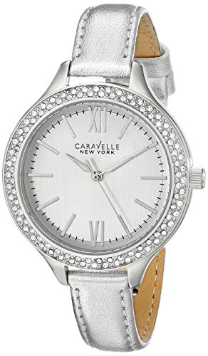 -. Binding : Watch -. Brand : Bulova -. Color : Silver -. Department : womens -. EAN : 0042429507159 -. Feature : Round watch with silver-tone leather band featuring white dial and crystal-accented bezel / Japanese-quartz movement with analog display and protective mineral crystal dial window / Features Roman numeral hour markers and dauphine hands / Features jewelry-clasp closure / Water resistant to 99 feet (30m): withstands rain and splashes of water, but not showering or submersion -. Label : Caravelle New York -. Manufacturer : Caravelle New York -. Model : 43L167 -. MPN : 43L167 -. PackageQuantity : 1 -. PartNumber : 43L167 -. ProductGroup : Watch -. ProductTypeName : WATCH -. Publisher : Caravelle New York -. ReleaseDate : 2013-12-17 -. Size : Standard -. Studio : Caravelle New York -. Title : Caravelle New York Women's 43L167 Analog-Display Japanese-Quartz Silver Watch -. UPC : 696719879510