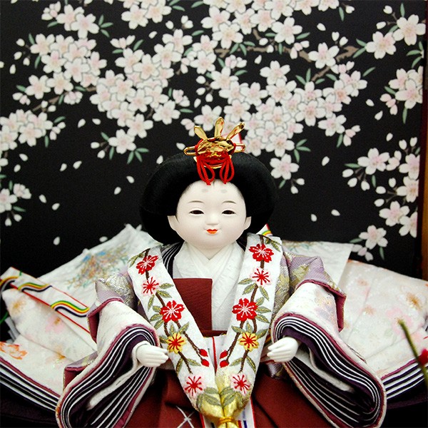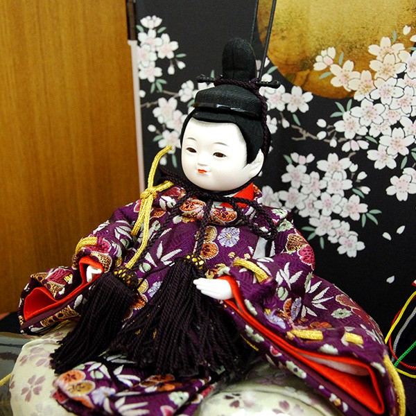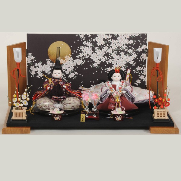 ・台座・屏風等には落ち着いた色目の雛人形セット。