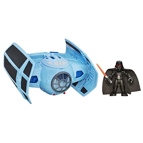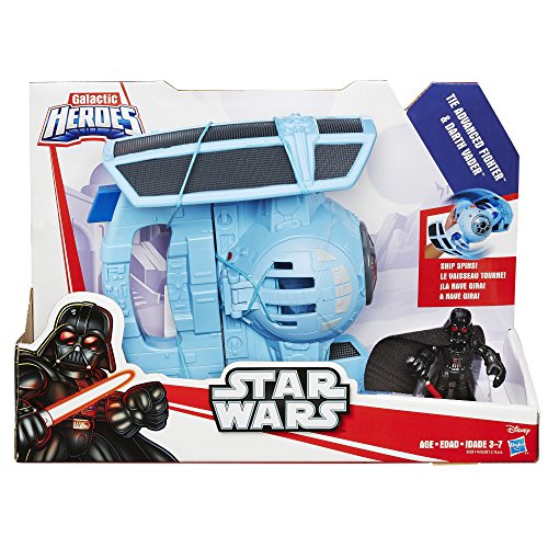 -. Binding : Toy -. Brand : Star Wars -. Color : Blue -. EAN : 0630509332229 -. Feature : Both are sized just right for little hands / Ship spins when you push engine button / Darth Vader can ride in the cockpit / Includes ship and figure. -. IsAdultProduct : 0 -. ItemPartNumber : B3814AS0 -. Label : Star Wars -. LegalDisclaimer : Age 3-7 -. Manufacturer : Star Wars -. Model : B3814AS0 -. MPN : B3814AS0 -. NumberOfItems : 1 -. PackageQuantity : 1 -. PartNumber : B3814AS0 -. ProductGroup : Toy -. ProductTypeName : TOYS_AND_GAMES -. Publisher : Star Wars -. Size : Standard -. Studio : Star Wars -. Title : Playskool Heroes Star Wars Galactic Heroes Jedi Force TIE Advanced Fighter Vehicle with Darth Vader Figure -. UPC : 630509332229 -. Warranty : No Warranty