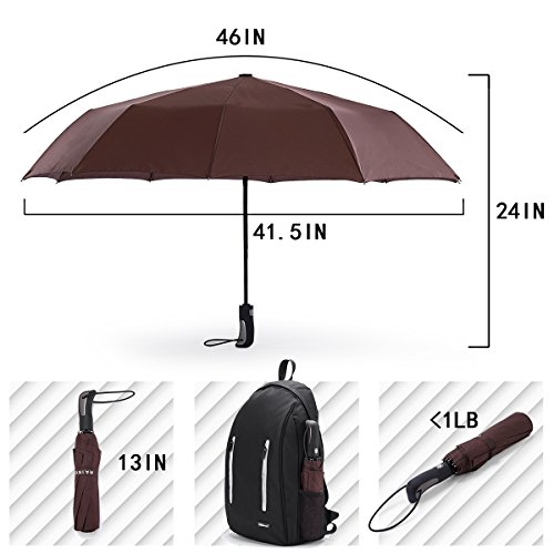 -. Feature : WINDPROOF: Our umbrellas are made of 10 reinforced fiberglass ribs while most umbrellas are made of 6 or 8 aluminum ribs. our design gives the umbrella a perfect balance of strength and flexibility, so that it can withstand a heavy downpour and strong wind. / WATERPROOF: 210T poly-ponge is a THICKER high density fabris with stronger water repellency technology and QUICK drying, once the raindrop touch instant line into the ball, no standing umbrella surface, and dry. / COMFORTABLE: The ergonomic, slip-proof, and rubberized handle. Our handles have also been balanced to allow for the most comfortable use possible. Easy one-handed operation! / COMPACT, LIGHTWEIGHT, AUTO OPEN/CLOSE FUNCTION: Less than 1LB. All you have to do is simply press down a button on the handle to expand and collapse the canopy making walking through the rain. / LIFETIME REPLACEMENT GUARANTEE: We can guarantee the quality of the umbrella because we are a real umbrella manufacturer with many years experience. If anything goes wrong with your umbrella, we will send you a replacement absolutely free!