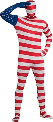 -. Feature : Rubie's has you covered with second skin, a full-body stretch jumpsuit that you can see, breathe, and even drink through / Printed red, white, and blue, stars and stripes / Zips up the back, covers the face / Size medium fits 5-foot to 5-foot-4-inches, size large fits 5-foot-4-inches and 5-foot-10-inches, and size xl fits 5-10-inches and 6-foot-3-inches / Based in new york state since 1950, rubies costume company is a family owned with more than 60 years experience bringing babies, children, teens, adults, and even pets the costumes and accessories they want to dress up at halloween and all year long