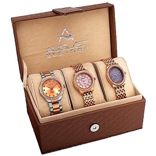 August Steiner Women's AS8063RG Dazzling Diamond Swiss Quartz 3 Watch Set