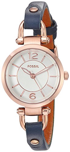 Hardware accents trim this sleek and small Georgia leather strap watch from Fossil.