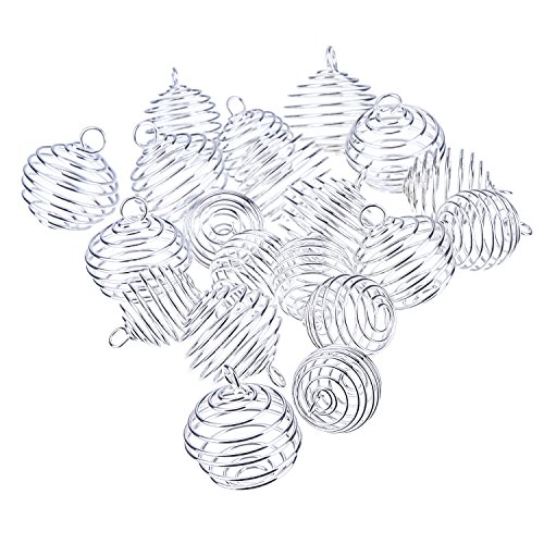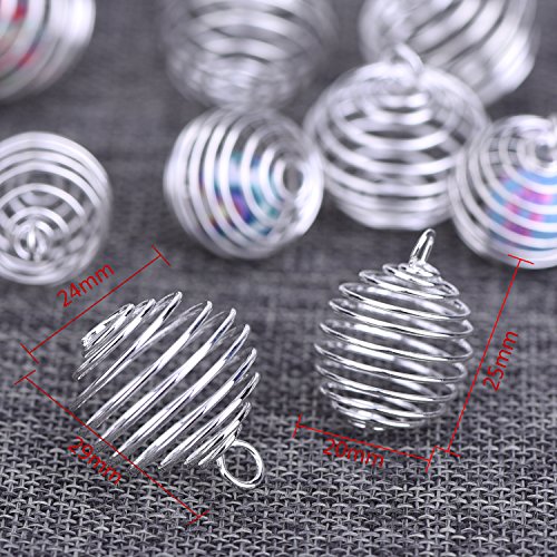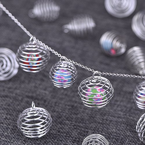 Outus 20 Pieces Spiral Bead Cages Pendants Findings Silver Plated for Jewelry Making, 2 Sizes