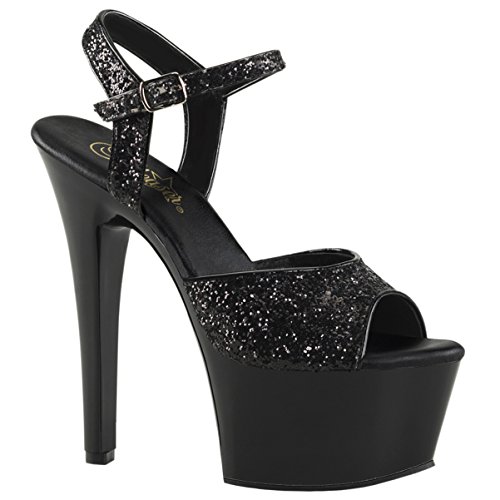 Womens Glitter High Heels Black Platform Sandals Ankle Strap Shoes 6 Inch Heels