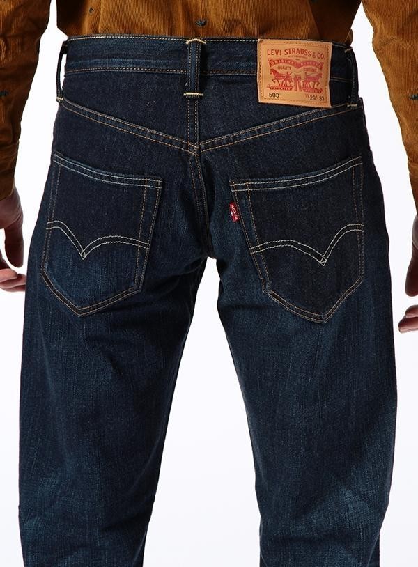 | 備考 | ルーズシルエットの定番「503」。太ももを少し細くスッキリ仕上げつつも、膝から裾にかけてややゆったりとさせたリラックスストレート。 503 CLASSIC UPGRADE の特徴: ・真鍮で仕上げたトップボタン ・高級感あふれるレザーパッチ ・バナナイエロー金茶色のステッチコントラスト ・腰回りをすっきり見せる細めのベルトループ ・1966年モデルに近いアーキュエットステッチ ・フロントには60年代以前の特徴である補強用のVステッチ |