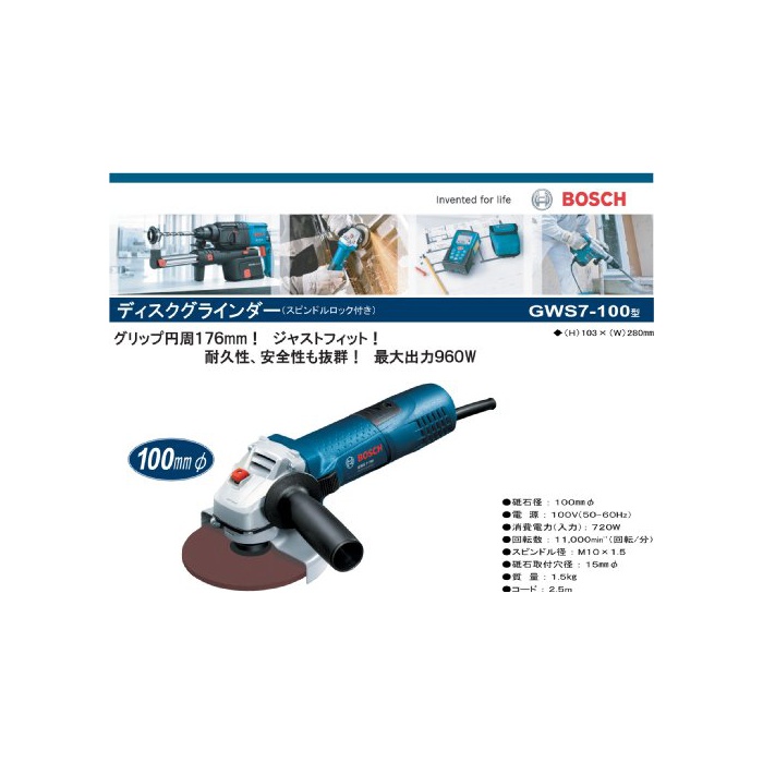 원본상품명:BOSCH(ボッシュ) 100mmディスクグラインダ[GWS7-100]
