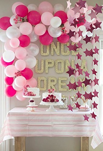 Package includes: 2 pcs Twinkle Star Paper Garlands of the color as the photo shows.Each string is about 3.3 feet long. Choose the style you prefer to best show the theme and atmosphere of your party. Like romantic purple, noble gold,sweet pink,or cool blue