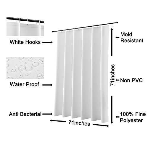 Shower Curtain, Devil's Faye Bath Curtain Liner Fabric Polyester Waterproof Mold Mildew Resistant Bathroom Set & Hooks ,71x71 Inch (White)