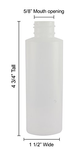 - BOTTLE MEASUREMENTS - 5 1/8 inches in height, diameter of 1 1/2 inches and the bottle mouth opening is 5/8 inch